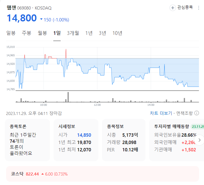 웹젠 주가 분석