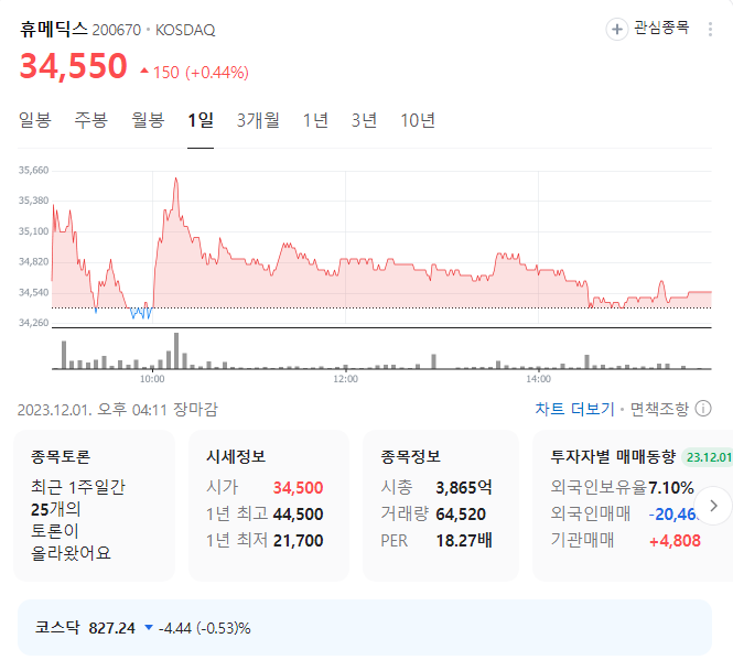 휴메딕스 주가 분석